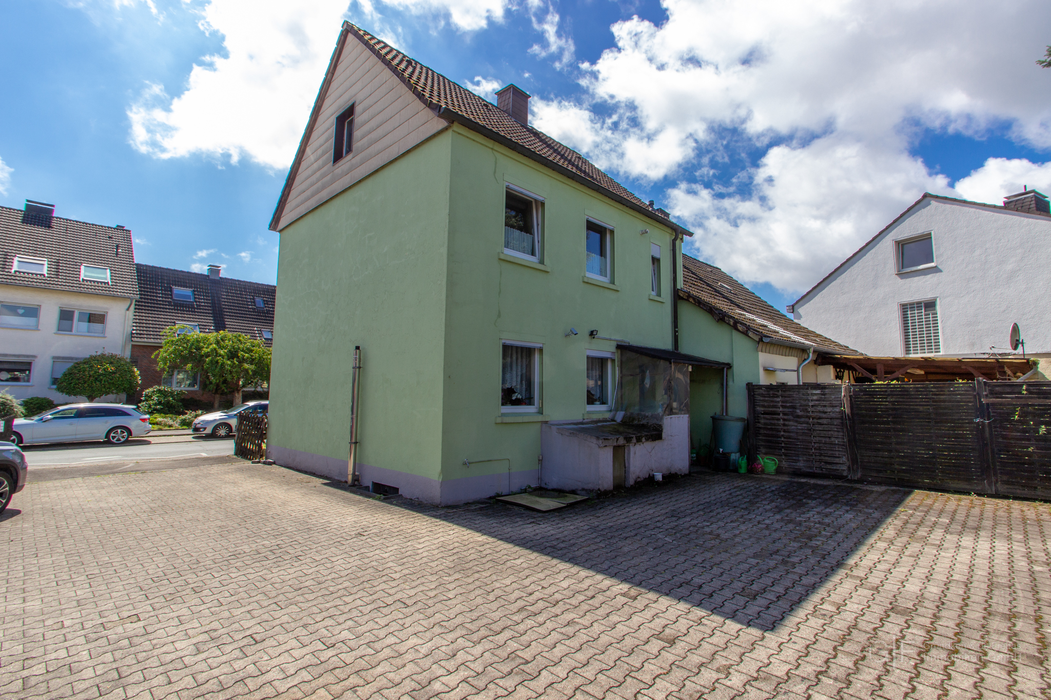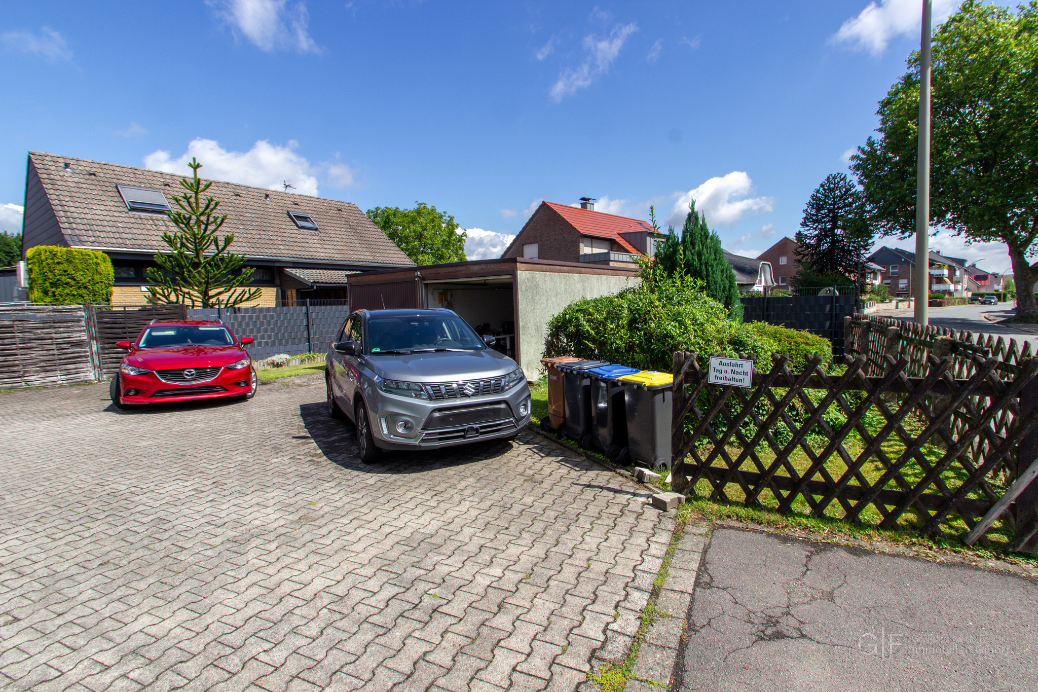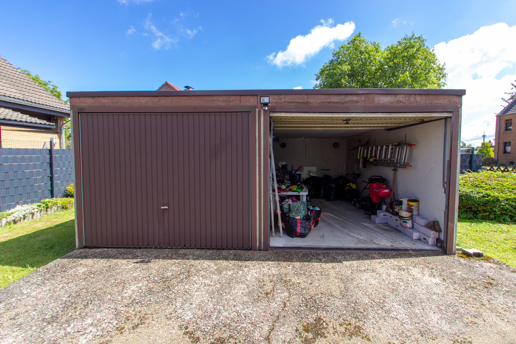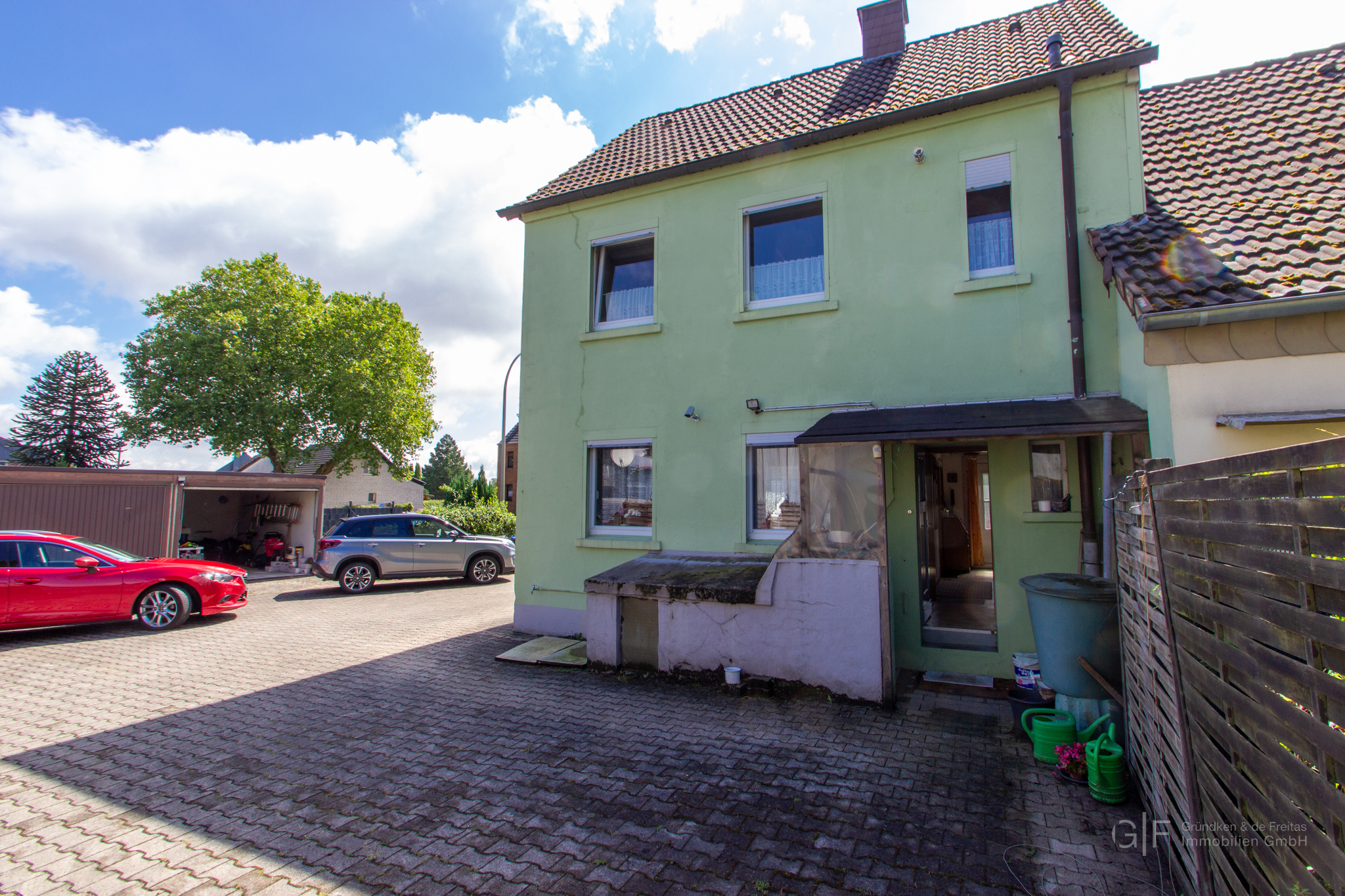 Besonders hervorzuheben sind die zwei großzügigen Garagen im Hof – perfekt für Fahrzeuge, Hobby oder zusätzlichen Stauraum.