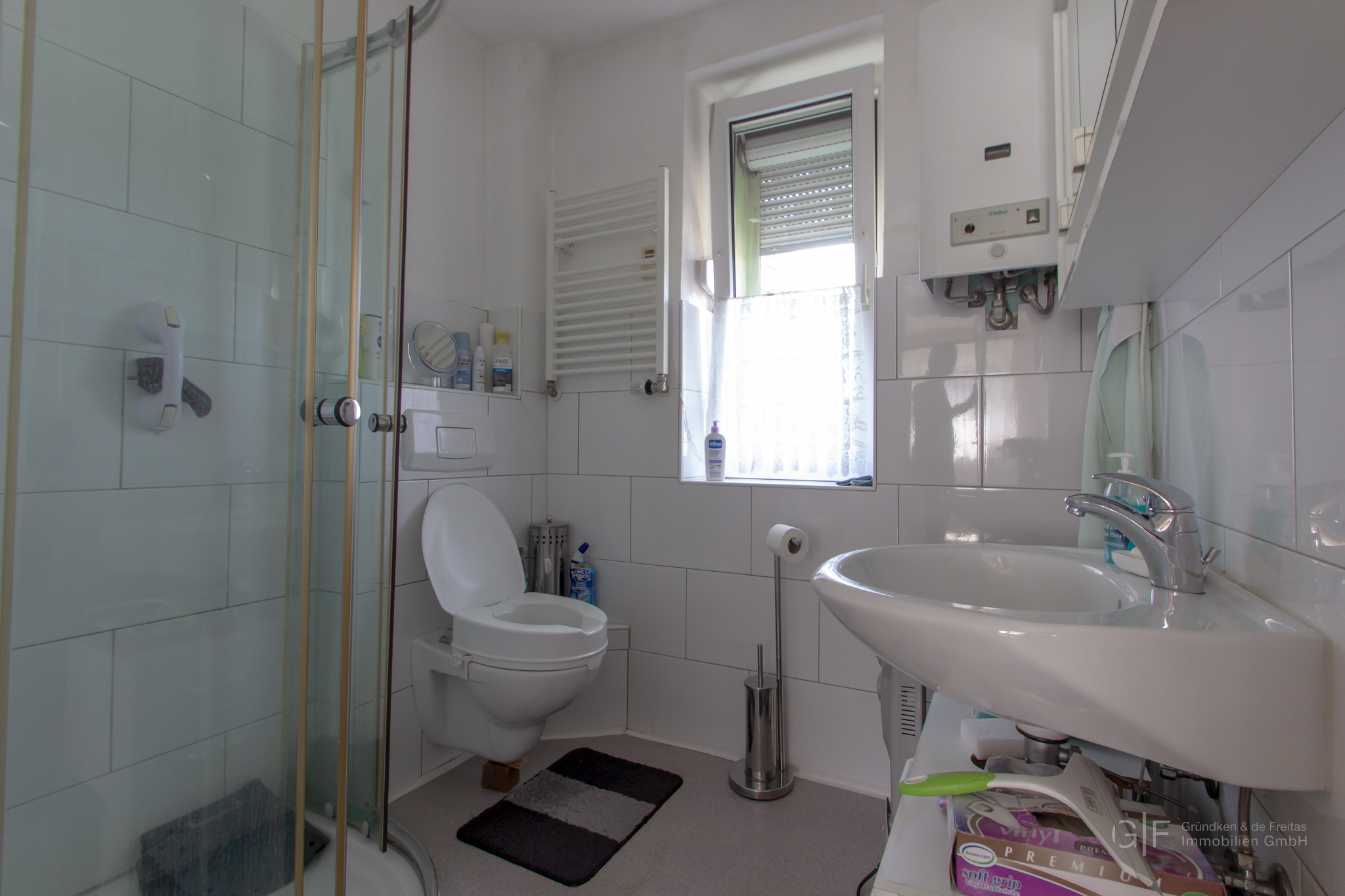 - Ausstattung des Bades Dusche Fenster