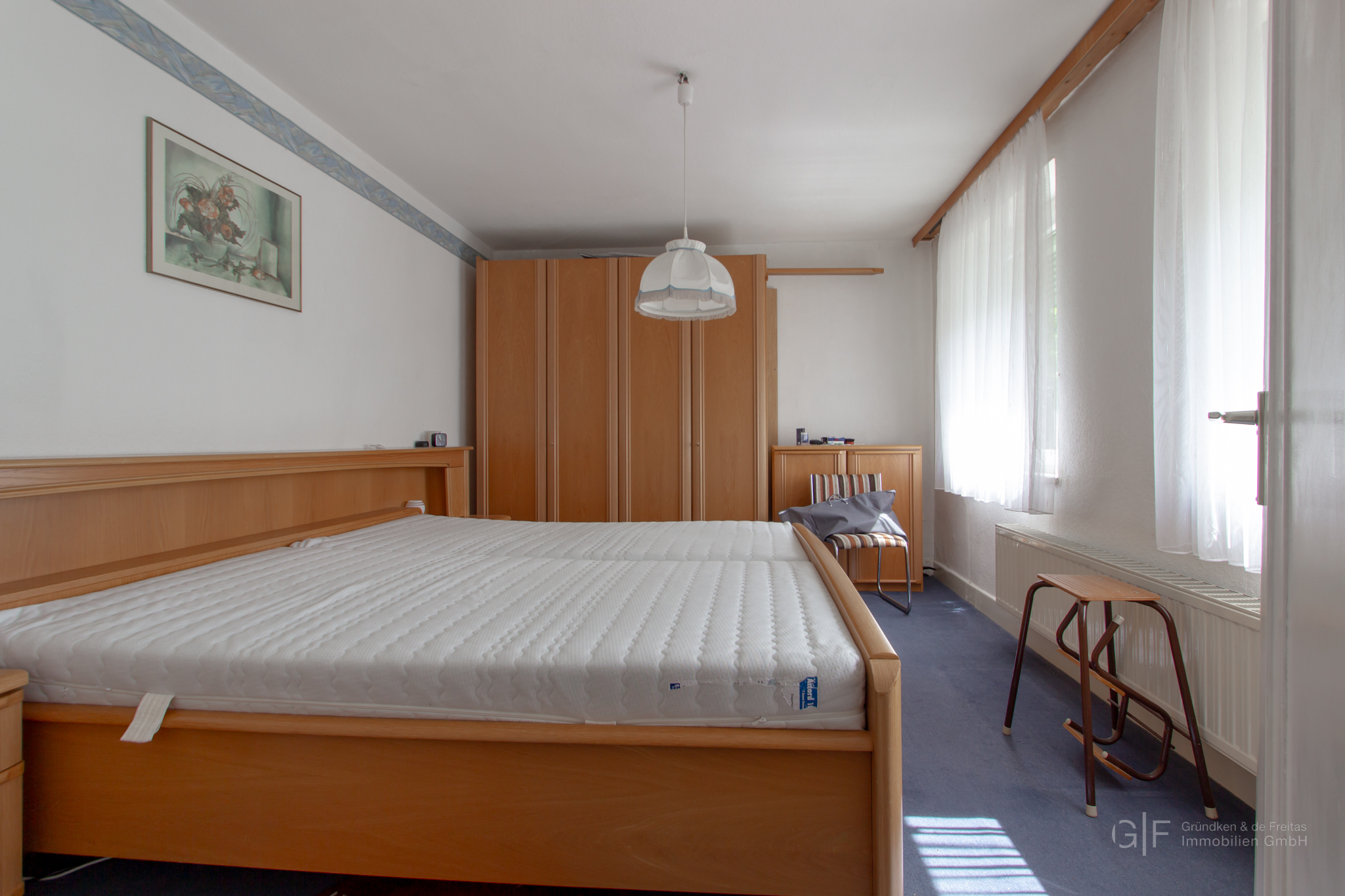 Das Obergeschoss beherbergt zwei gut geschnittene Schlafräume sowie ein modernisiertes Badezimmer mit Fenster. Große Fensterflächen in allen Wohnräumen sorgen für eine angenehme Helligkeit und eine freundliche Wohnatmosphäre.
